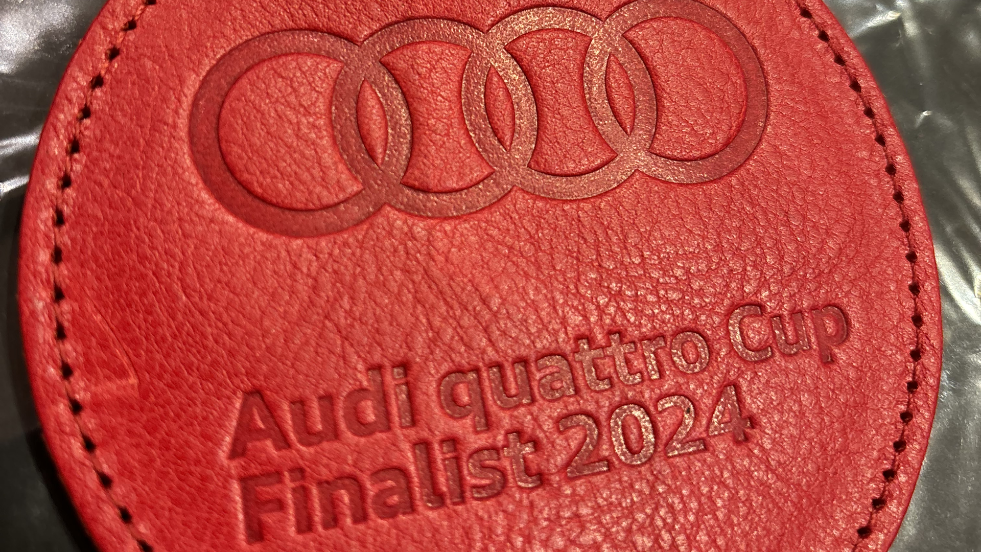 Debossed logo on leather
