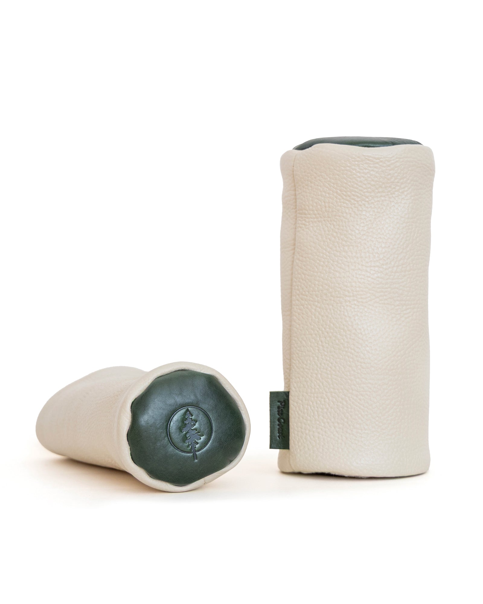 This driver headcover is handsewn and made of a combination of green and white colored vegetable tanned leather from Tuscany, Italy. The inner lining is a white wool blend and will keep the club safe and stylish.