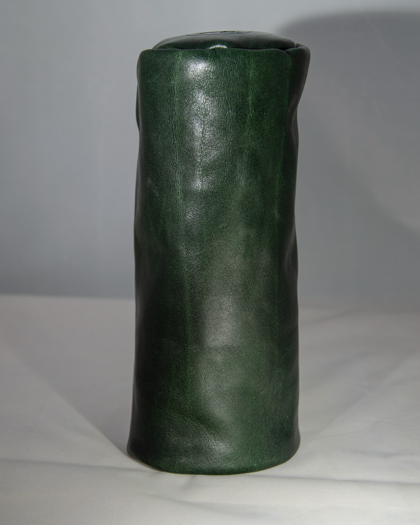 This fairway wood headcover is handsewn and made of a forest green colored vegetable tanned leather from Tuscany, Italy. The inner lining is a white wool blend and will keep the club safe and stylish.