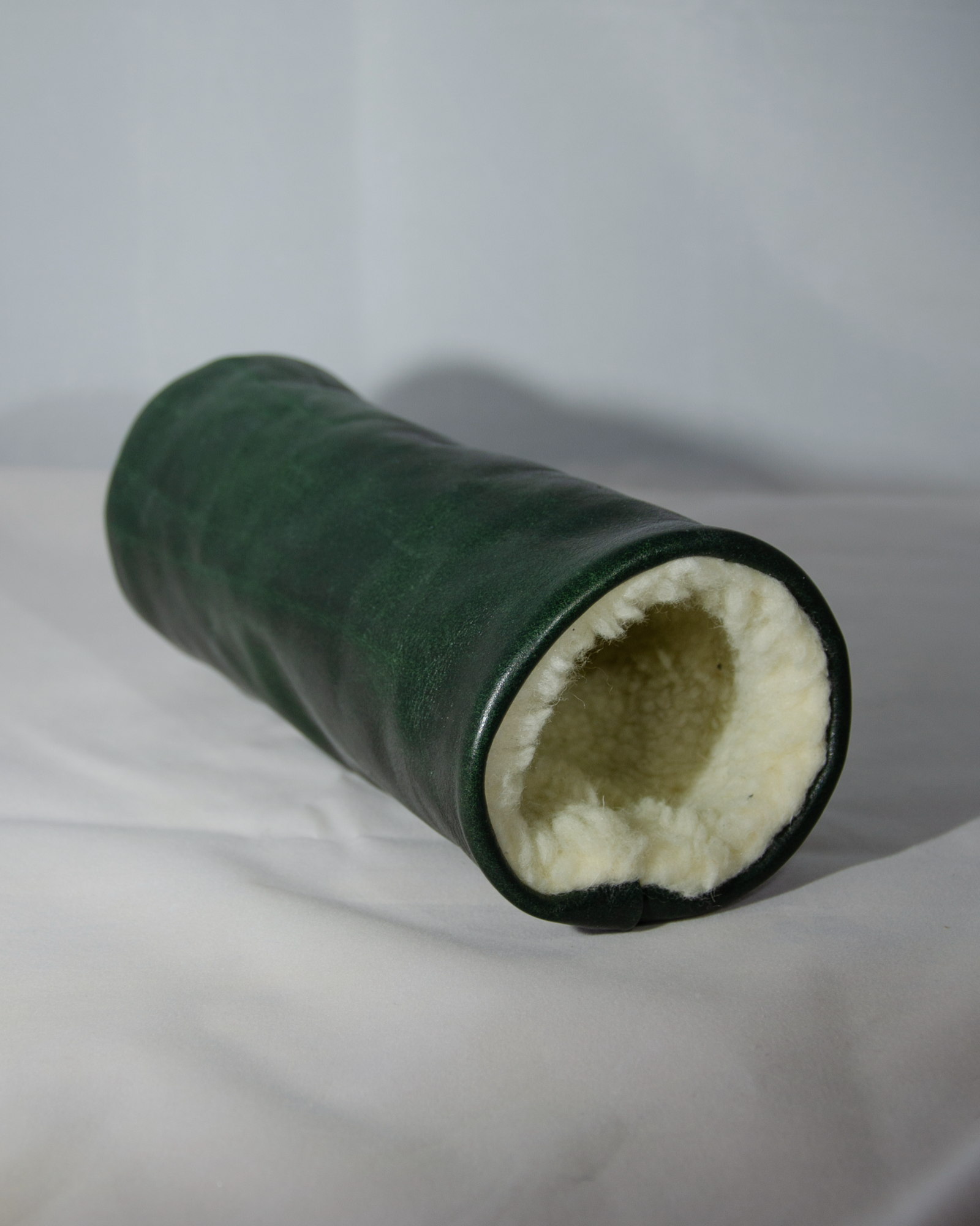 This fairway wood headcover is handsewn and made of a forest green colored vegetable tanned leather from Tuscany, Italy. The inner lining is either a white or gray wool blend and will keep the club safe and stylish.