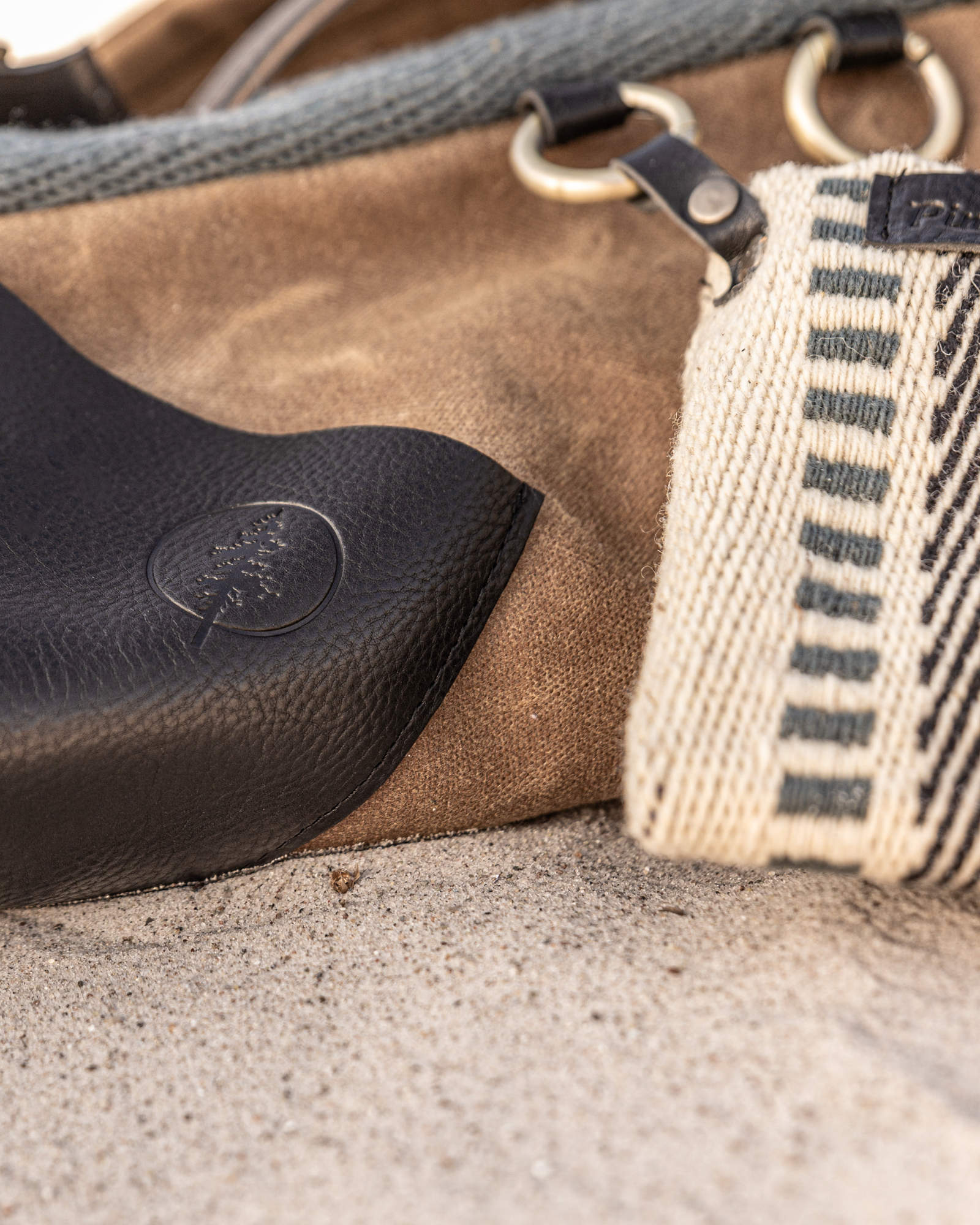 Debossed logo on leather