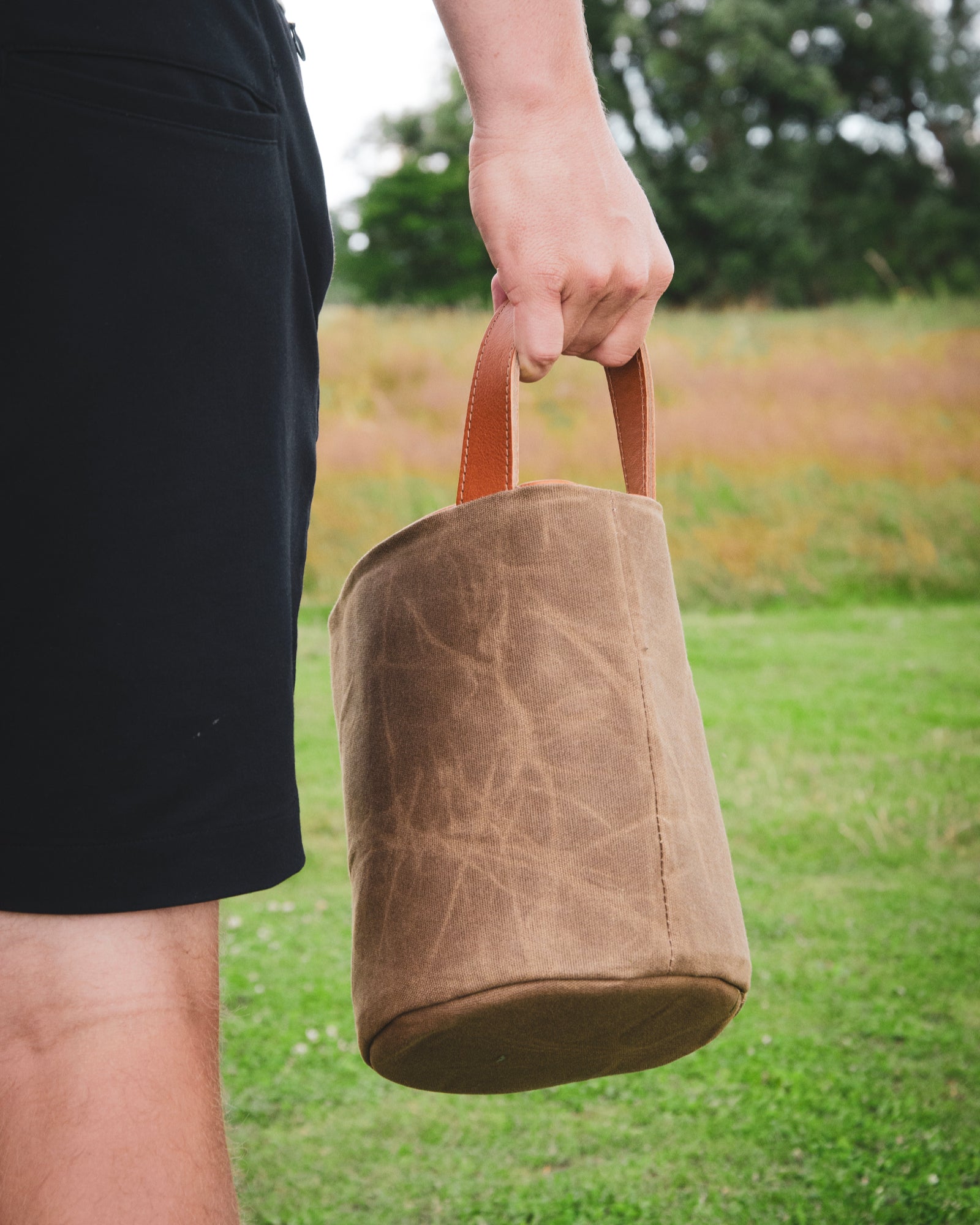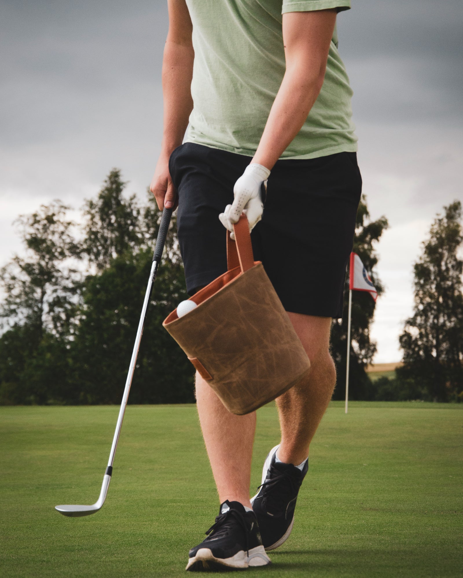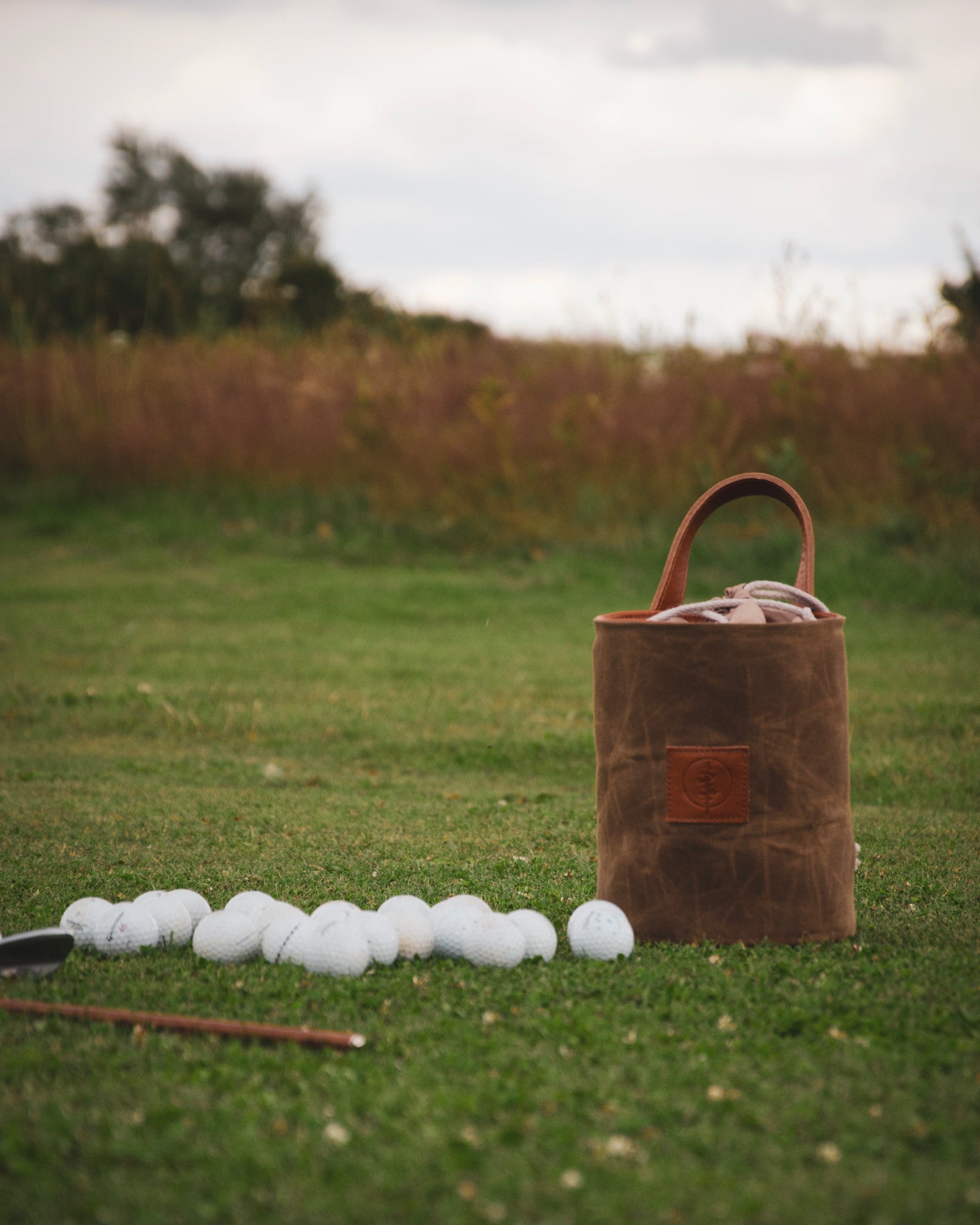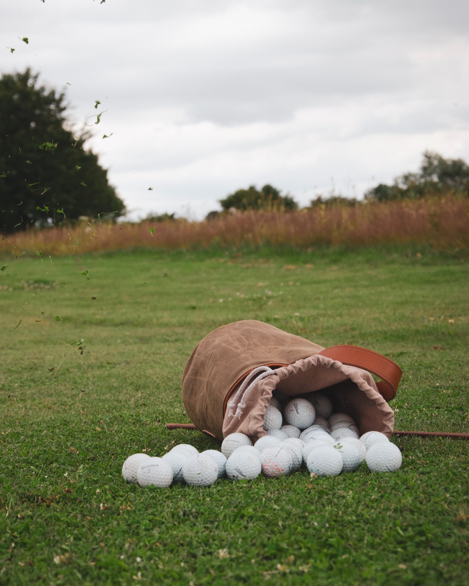 Introducing our Handcrafted Ball Bag, the ultimate accessory for your golf training sessions. Created from our premium Italian leather and durable waxed canvas, this bag oozes elegance and functionality in one go.