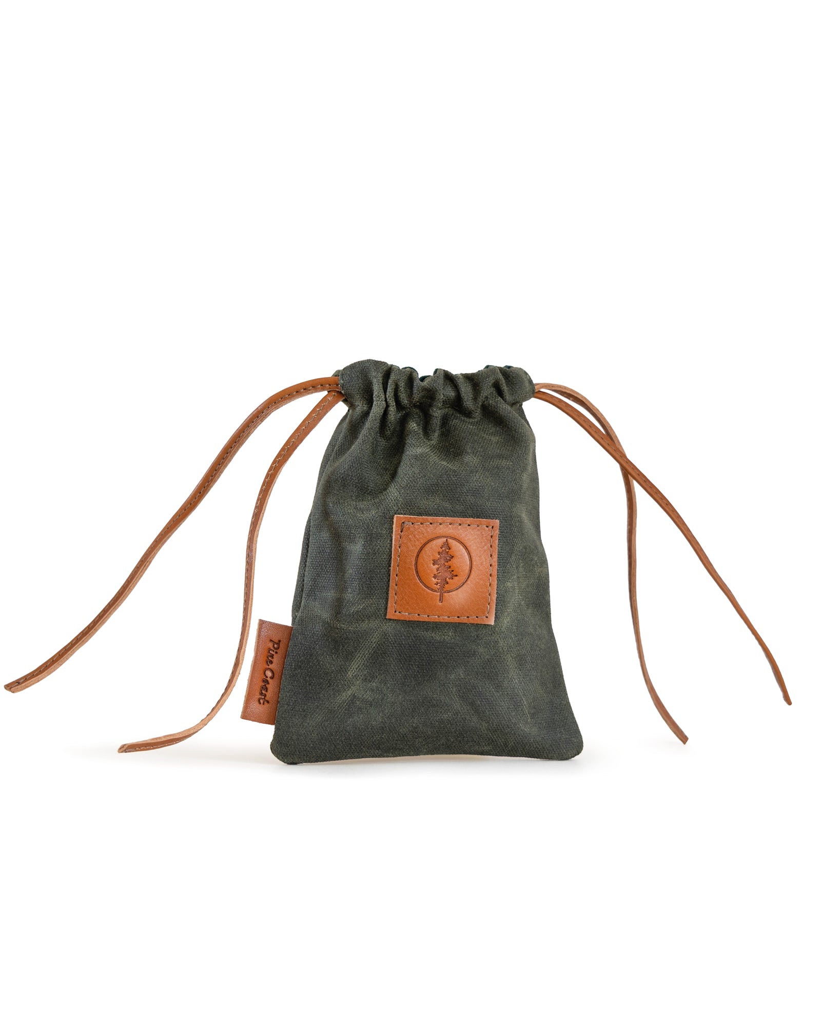 The Pine Coast Valuables Pouch is designed to protect your most personal items with refined simplicity and timeless craftsmanship. Inside, a soft velvet lining offers a safe resting place for your watch, phone, or accessories. Outside, our signature Scottish waxed canvas provides strength and weather resistance, while drawstrings made from Italian vegetable-tanned leather secure the opening with quiet elegance.
